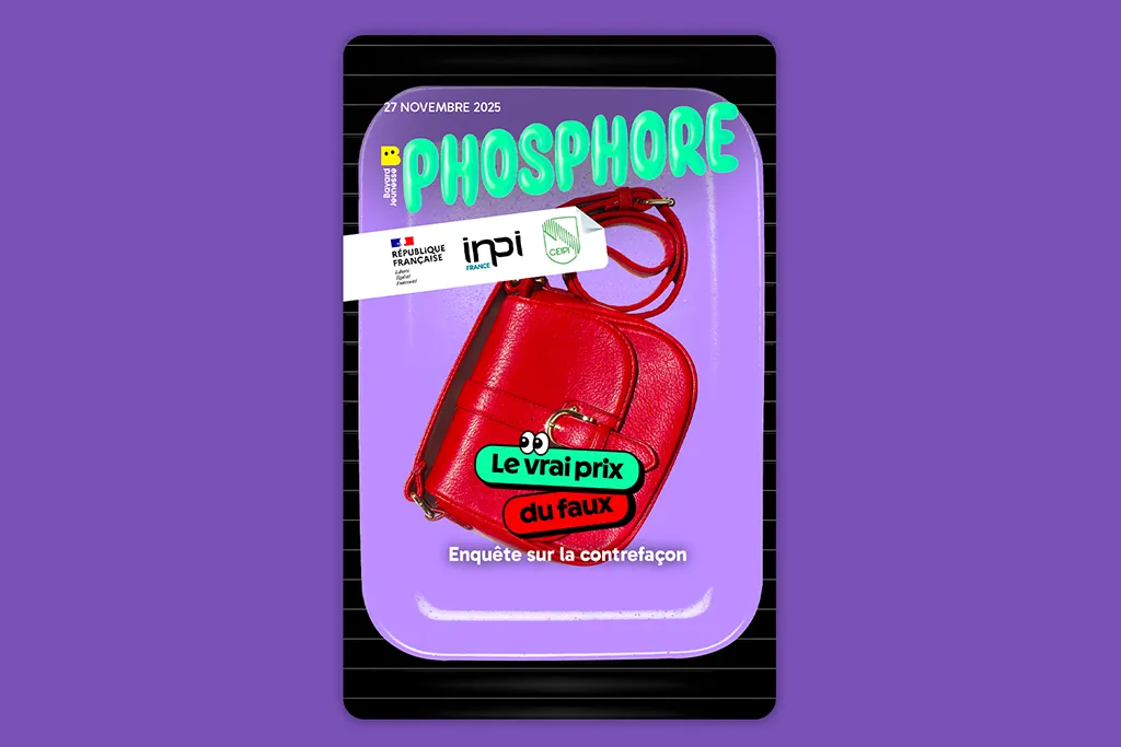À l’occasion du Black Friday 2025, l’INPI, le Centre d’études internationales de la propriété intellectuelle (CEIPI) et Bayard Presse publient un numéro spécial de l’e-magazine Phosphore, intitulé « Le vrai prix du faux – Enquête sur la contrefaçon ». Destiné aux adolescents, ce support pédagogique vise à renforcer leur compréhension des enjeux liés à la contrefaçon et à les sensibiliser aux risques associés.