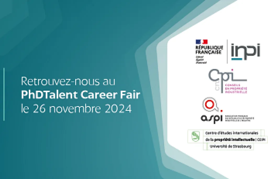 Pour cette édition 2024 du PhDTalent Career Fair, l’Institut sera à nouveau accompagné de ses partenaires : l’Association Française des Spécialistes en Propriété Industrielle de l'Industrie (ASPI), le Centre d'Études Internationales de la Propriété Intellectuelle (CEIPI) et la Compagnie nationale des conseils en propriété industrielle (CNCPI).