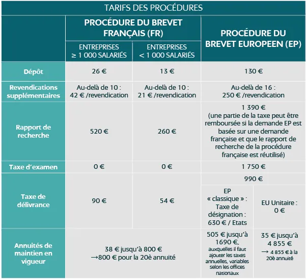 É. G. : Le dépôt d’une demande de brevet français est une étape simple et peu coûteuse pour une entreprise française, a fortiori si elle compte moins de 1 000 salariés (voir tableau ci-dessous). Il pourrait s’agir d’une étape systématique des petites et moyennes entreprises (PME) françaises.