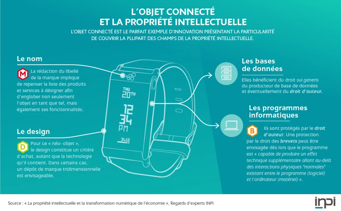 L'objet connecté est le parfait exemple d'innovation présentant la particularité de couvrir la plupart des champs de la propriété intellectuelle :