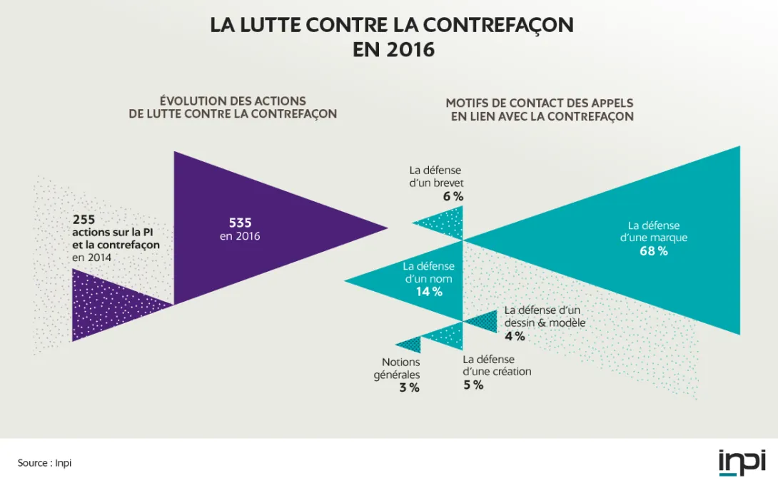 535 actions sur la propriété intellectuelle et la contrefaçon contre 255 en 2014.