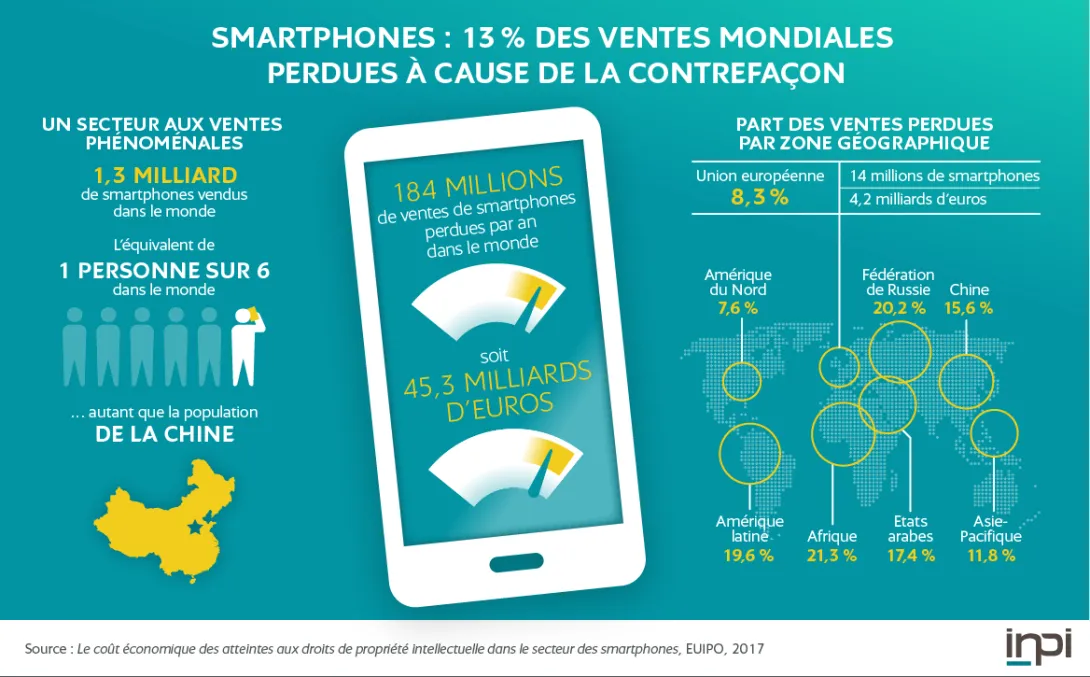 Infographie : 13 % des ventes mondiales de smartphone perdues à cause de la contrefaçon