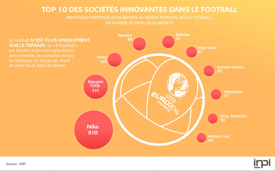 Principaux portefeuilles de brevets au niveau mondial liés au football en nombre de familles de brevets