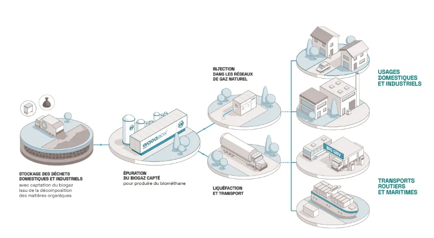 Antonio Trueba : Depuis sa création en 2015 à Grenoble, Waga Energy est spécialisée dans la production de biométhane par l’épuration du biogaz issu des déchets stockés dans les sites d’enfouissements. Ce biométhane est ensuite injecté dans les réseaux de distribution de gaz naturel, en substitution du gaz naturel fossile, contribuant ainsi à réduire les émissions de gaz à effet de serre. Cette innovation, appelée WAGABOX®, nous permet de participer à la lutte contre le changement climatique et de favoriser l’indépendance énergétique des territoires.