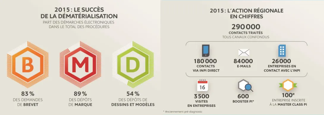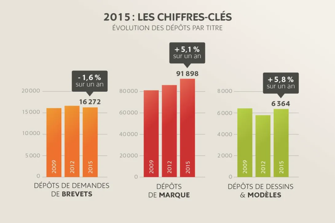 - En 2015, l’INPI a reçu 16272 dépôts de demandes de brevets, soit une légère baisse de 1,6% par rapport à 2014.