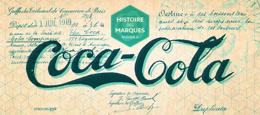 Première marque Coca-Cola, déposée par la société The Coca-Cola company d’Atlanta, Etats-Unis, au greffe du tribunal de Paris le 11 juillet 1919