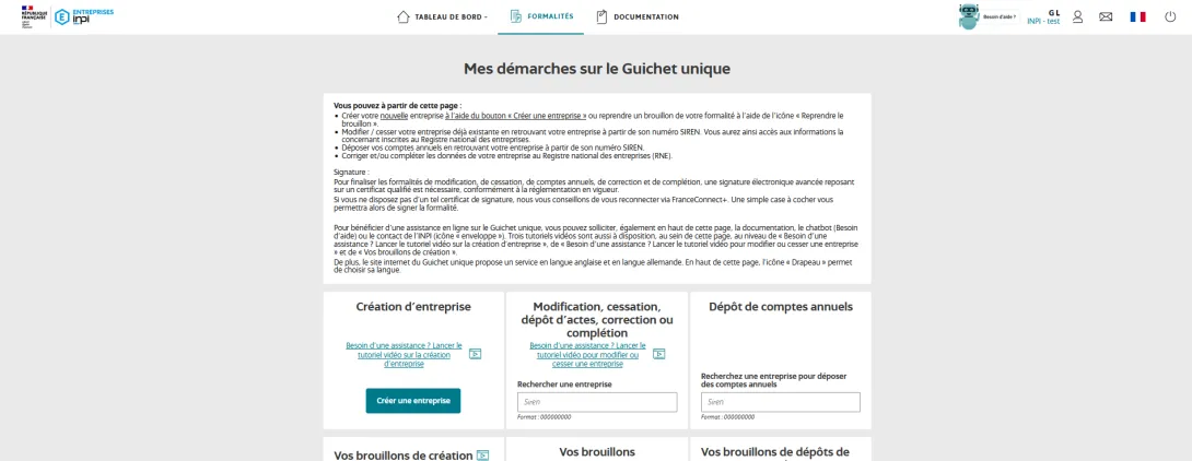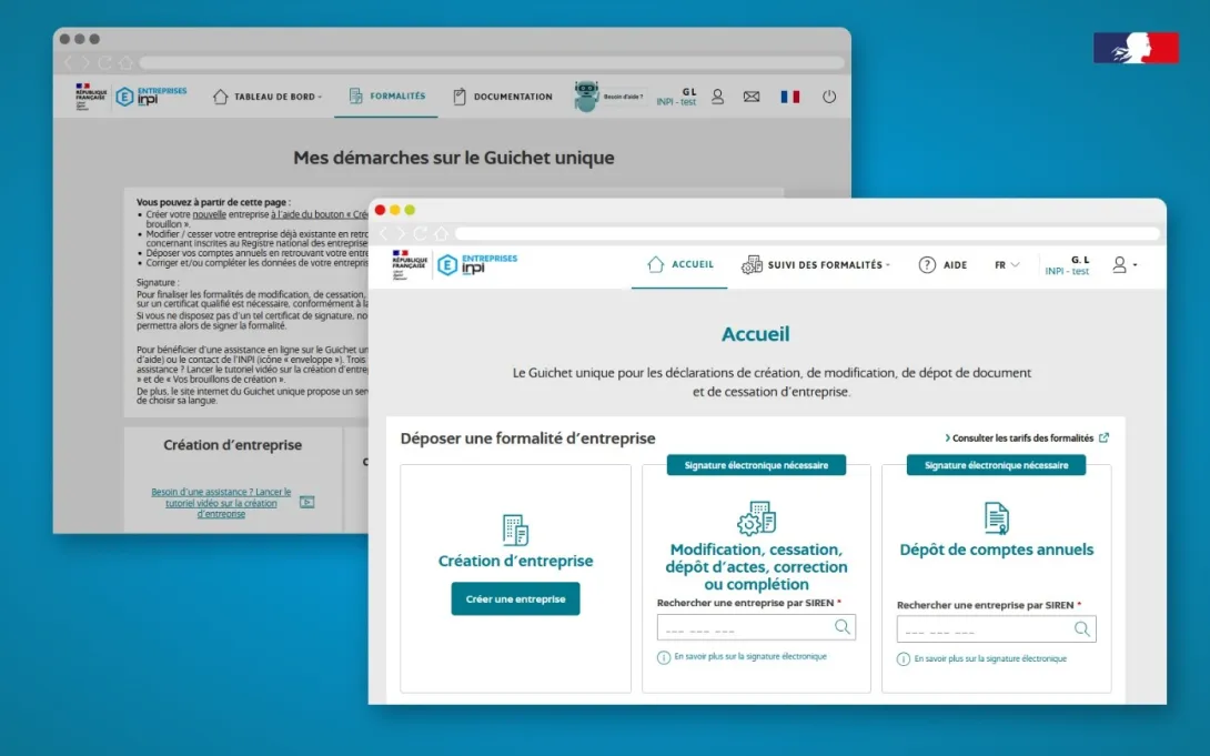 Voir l'articleL’INPI est l’opérateur du Registre national des entreprises (RNE) et du Guichet unique des formalités d’entreprises (GU), la plateforme numérique qui centralise toutes les formalités d’entreprises en un seul point d'entrée.