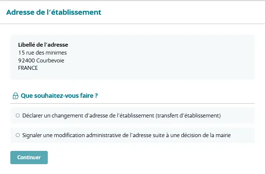 - Suppression de la possibilité de changer l’adresse d’un établissement sans transfert pour une entreprise individuelle.