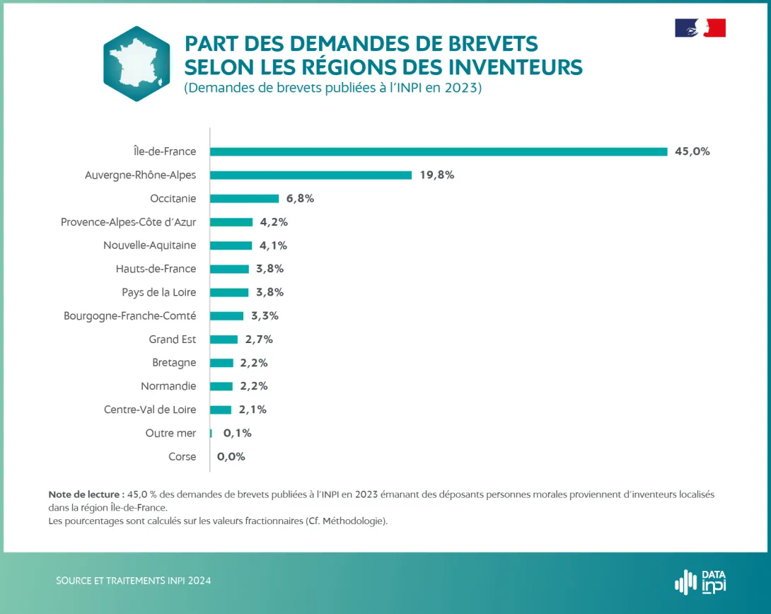 Infographie : répartition des demandes de brevets selon les régions des inventeurs