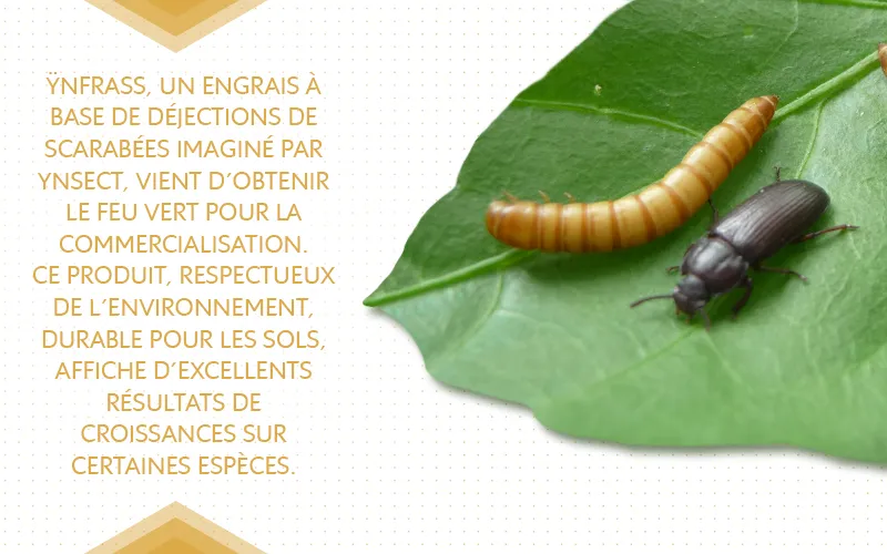 J-G L. : L’engrais que nous venons de commercialiser est un produit à base de « frass », des déjections d’insectes, issu plus particulièrement d’un scarabée spécifique, d’où le nom de notre produit : ŸnFrass.